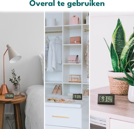 Les facteurs atmosphériques ont un impact important sur votre bien-être. Un environnement de vie idéal est essentiel pour une bonne santé. Avec le mini hygromètre Ease Electronicz, vous avez un aperçu clair de l'humidité et de la température dans votre maison, ce qui vous permet de comprendre votre situation en un coup d'œil. L'hygromètre vous permet de tirer le meilleur parti de votre environnement et de votre bien-être.