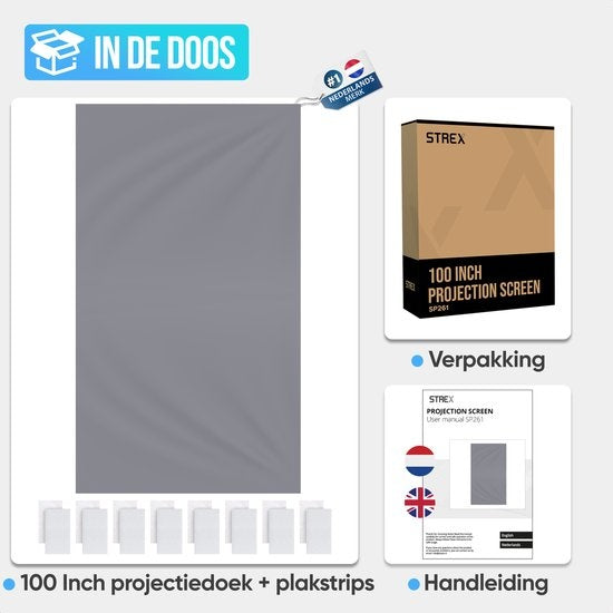 Vous recherchez un écran de projection ? L'écran de projection 100 pouces Strex est multifonctionnel, est livré incluant le matériel de montage et est rapide et facile à monter. L'écran 220x120CM 16:9 est la taille parfaite pour votre salon, votre jardin ou votre bureau.