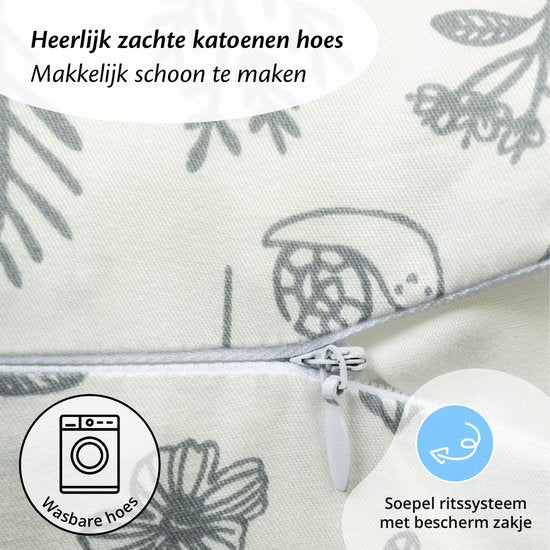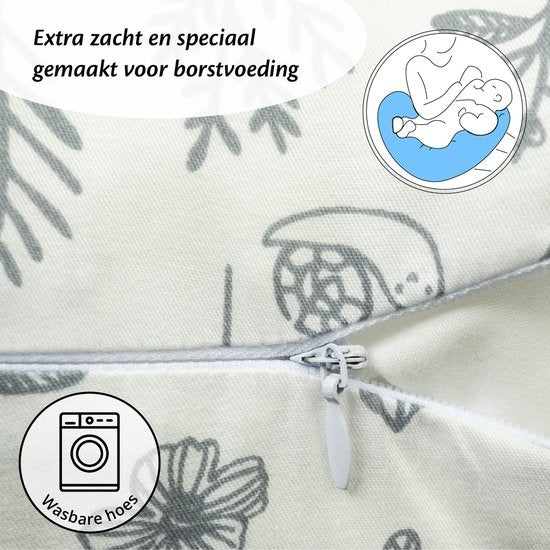 Ella Voedingskussen met hoes van 100% katoen - Zwangerschapskussen - Inclusief afneembare en wasbare hoes - Wit met plantjes