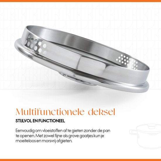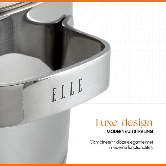 ELLE Gourmet Plaque de cuisson moderne en acier inoxydable avec couvercle - Ø 24 cm - Marmite - Sans PFAS - Induction