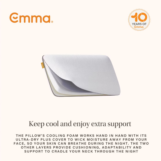 Vous souhaitez dormir au frais et bénéficier d'un soutien optimal chaque nuit ? L'oreiller Emma Diamond Degree combine une mousse à mémoire de forme de haute qualité avec la mousse rafraîchissante innovante ThermoSync. Vous bénéficiez ainsi d'un soutien moyennement ferme qui s'adapte parfaitement à votre position de sommeil, tandis que les matériaux respirants créent un environnement de sommeil agréable.