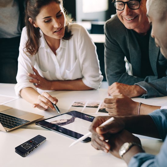 Une des grandes caractéristiques de cet enregistreur est la fonction de reconnaissance vocale automatique...sur la table. Lorsque cette fonction est activée, l'enregistrement démarre automatiquement dès qu'un son est détecté. Vous économisez ainsi de l'espace de stockage en évitant les silences et les longues pauses. Vous ne conservez que les informations pertinentes !