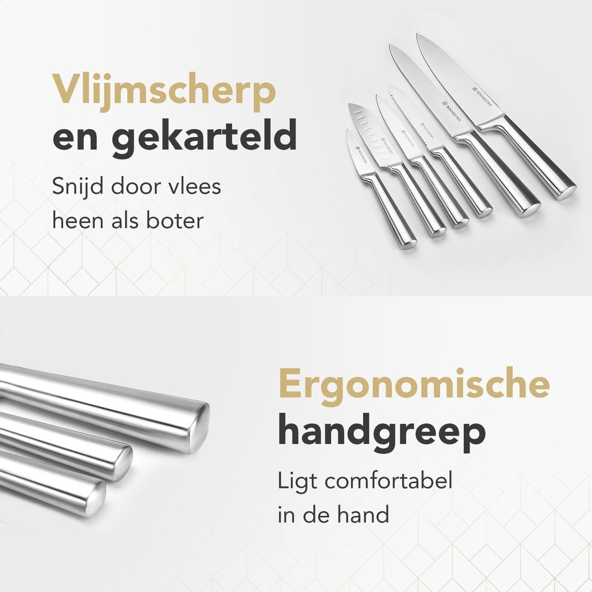 Un bon set de couteaux change vraiment la donne dans la cuisine. C'est pourquoi le set de couteaux 14 pièces de Rochester est indispensable sur le comptoir de votre cuisine. Ce set complet contient le couteau adéquat pour chaque tâche de coupe. Il est ainsi plus facile de couper finement les légumes, les herbes ou les steaks.