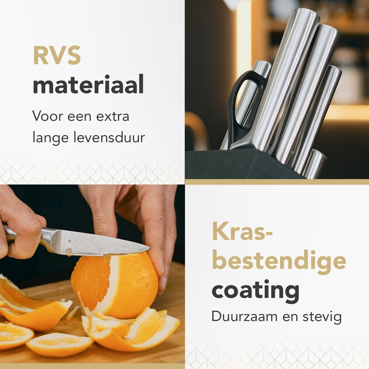 Les couteaux en acier inoxydable sont tranchants comme des rasoirs, de haute qualité et ont un revêtement résistant aux rayures. Grâce à leur conception durable, vous pourrez profiter de ces couteaux pendant des années. Les couteaux sont légers et les poignées antidérapantes ont un design ergonomique, de sorte que même lorsque vous passez des heures à travailler dans la cuisine, les couteaux restent agréables à tenir.