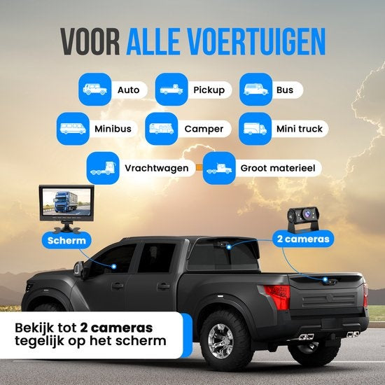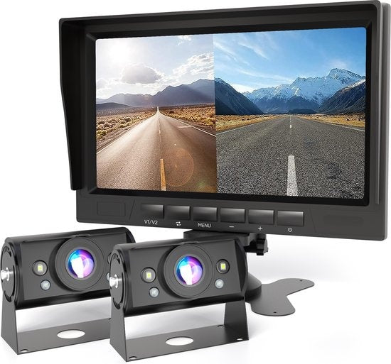Vous conduisez régulièrement un camping-car, une camionnette, un camion ou un autre véhicule qui n'est pas équipé d'une caméra de recul ? Alors branchez cet ensemble de caméra de recul filaire et facilitez votre conduite. Le kit de caméra de recul avec écran, 2 caméras, vision nocturne, grand angle de vue et IP69 résistance à l'eau convient à tous les types de véhicules, à condition qu'il dispose d'une connexion électrique 12V/24V DC.