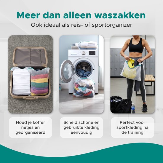 - Parfait comme sac à linge dans la valise ou sac de sport.
