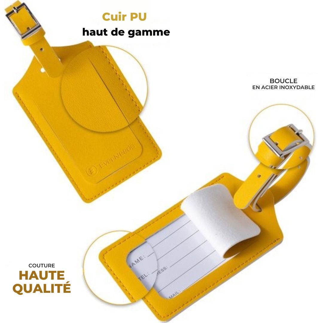 Etiquettes de bagage pour valises - EverNeeds - Cuir PU - 2 pièces - Jaune