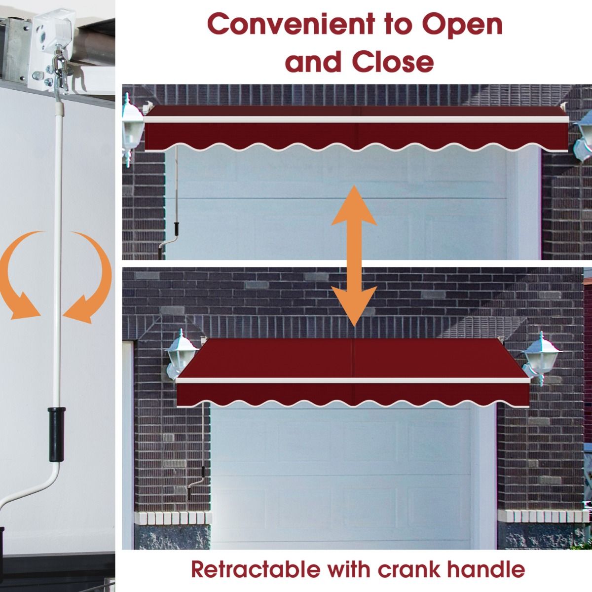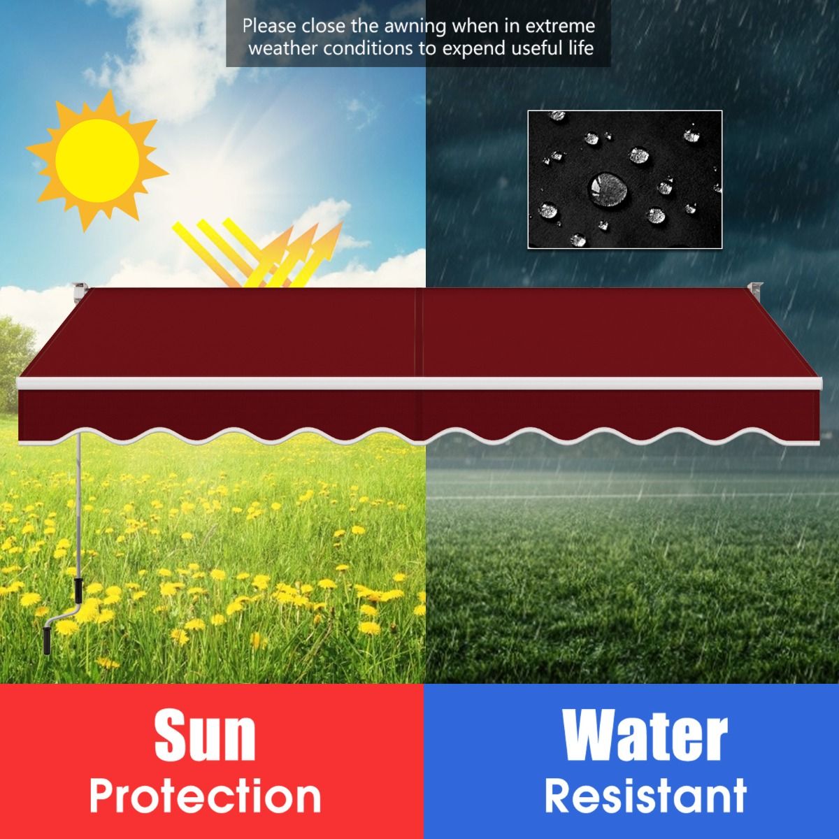 - Extensible et facile à utiliser:La longue manivelle ouvre et ferme l'auvent sans effort.