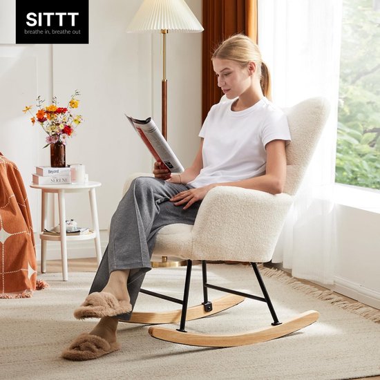 SITTT Fauteuil à bascule - Fauteuil de relaxation pour chambre de bébé - Fauteuil - Chaise d'allaitement - Blanc crème - Beige