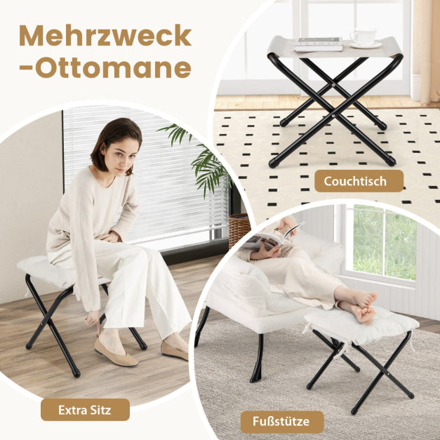 Utilisez le pouf comme repose-pieds, siège supplémentaire ou même comme table basse. Il est pliable et dispose d'un coussin amovible pour plus de flexibilité. - Confort et durabilité