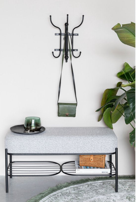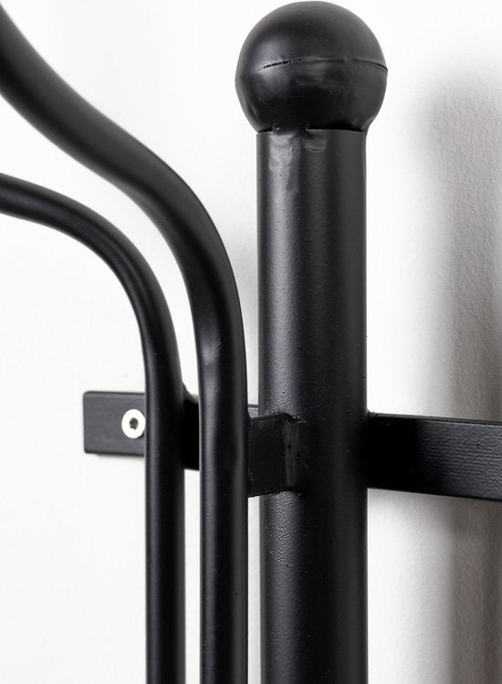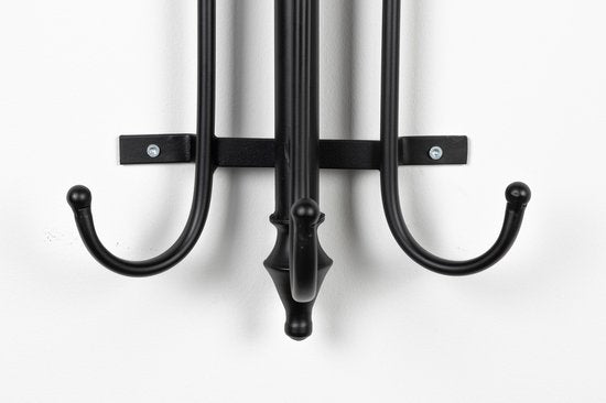 Le porte-manteau traditionnel Ran est un portemanteau en métal noir avec six crochets. Le haut et le bas sont décorés de détails élégants, ce qui confère à ce portemanteau un aspect sophistiqué. Vous pouvez facilement fixer le porte-manteau au mur à l'aide de quatre vis. Accrochez-y votre écharpe, votre manteau ou votre sac préféré et ce porte-manteau enrichira considérablement votre mur!