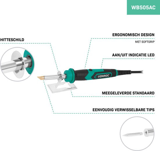 Pour la soudure, trois types de pointes à souder sont inclus : pointe, biseau et biseautée. Elles sont idéales pour diverses applications de soudure, qu'il s'agisse de travaux sur des équipements électriques ou de réparations. Ce n'est pas tout : l'ensemble comprend également une lame tranchante qui, sous l'effet de la chaleur, fonctionne comme un "couteau chaud". Elle permet de découper sans effort des matériaux tels que le plastique, le nylon ou la mousse - parfaits pour le modelage, par exemple. Bref, un outil polyvalent aux possibilités infinies pour les projets créatifs et techniques!