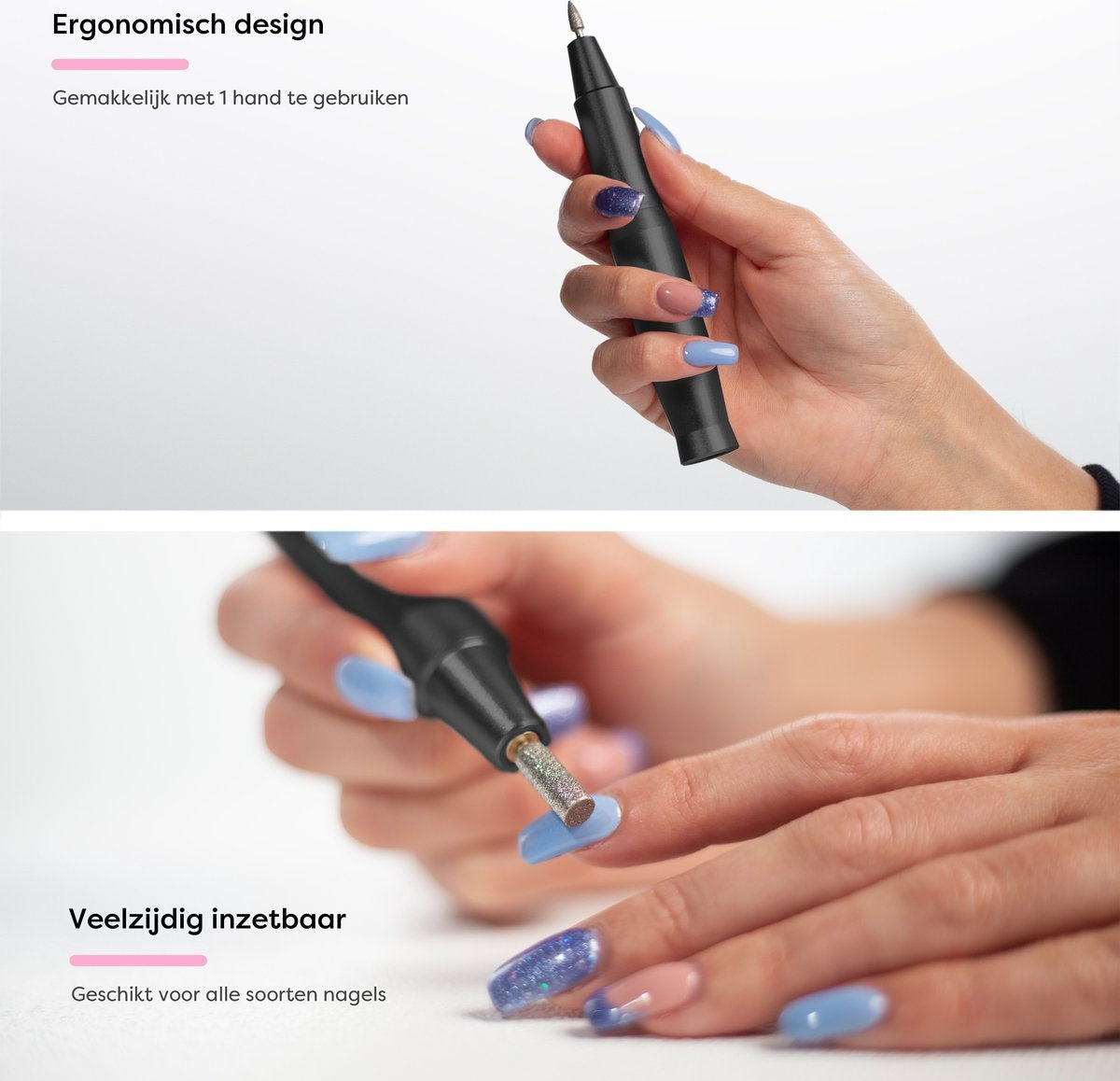 La lime à ongles est de petite taille, ce qui permet à vos mains de rester dans une position confortable et de ne pas vous blesser. La fraiseuse à ongles tient bien dans la main et est conçue pour une utilisation prolongée sans douleur ni blessure à la main ou au poignet. La fraiseuse à ongles est donc idéale pour une utilisation professionnelle avec plusieurs clients dans la même journée.