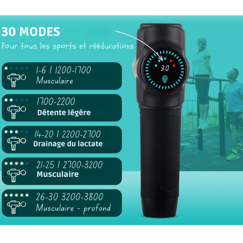 - 30 niveaux d'intensité réglables pour personnaliser votre massage.