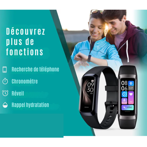 Vous voulez dépasser vos performances sportives ? Avec le traqueur d'activité FITAGE, vous pouvez utiliser jusqu'à 25 modes sportifs différents. Pensez à la marche, la course, le vélo, le football, le fitness et bien plus encore ! Le podomètre enregistre toutes vos activités sportives, ce qui vous permet d'avoir un aperçu complet de votre santé et de vérifier vos performances a posteriori. Outre la possibilité d'utiliser la montre intelligente de suivi de l'activité pendant le sport, il existe d'autres fonctions utiles liées à la montre intelligente. La smartwatch dispose par exemple d'une fonction de recherche de téléphone, d'un chronomètre, d'un rappel de se lever, d'un rappel de boire de l'eau et même d'une fonction pour prendre des photos!