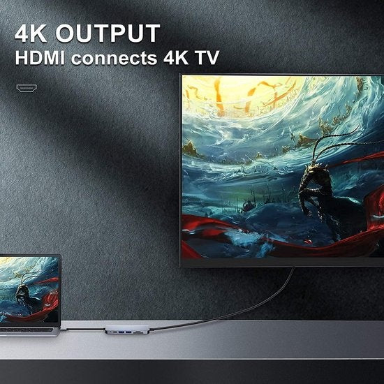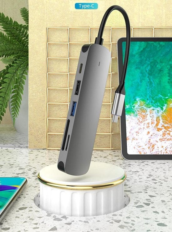 Fuegobird 6 in 1 USB-C HUB - USB3.0 + SD/TF + HDMI + USB-C - Voyant lumineux