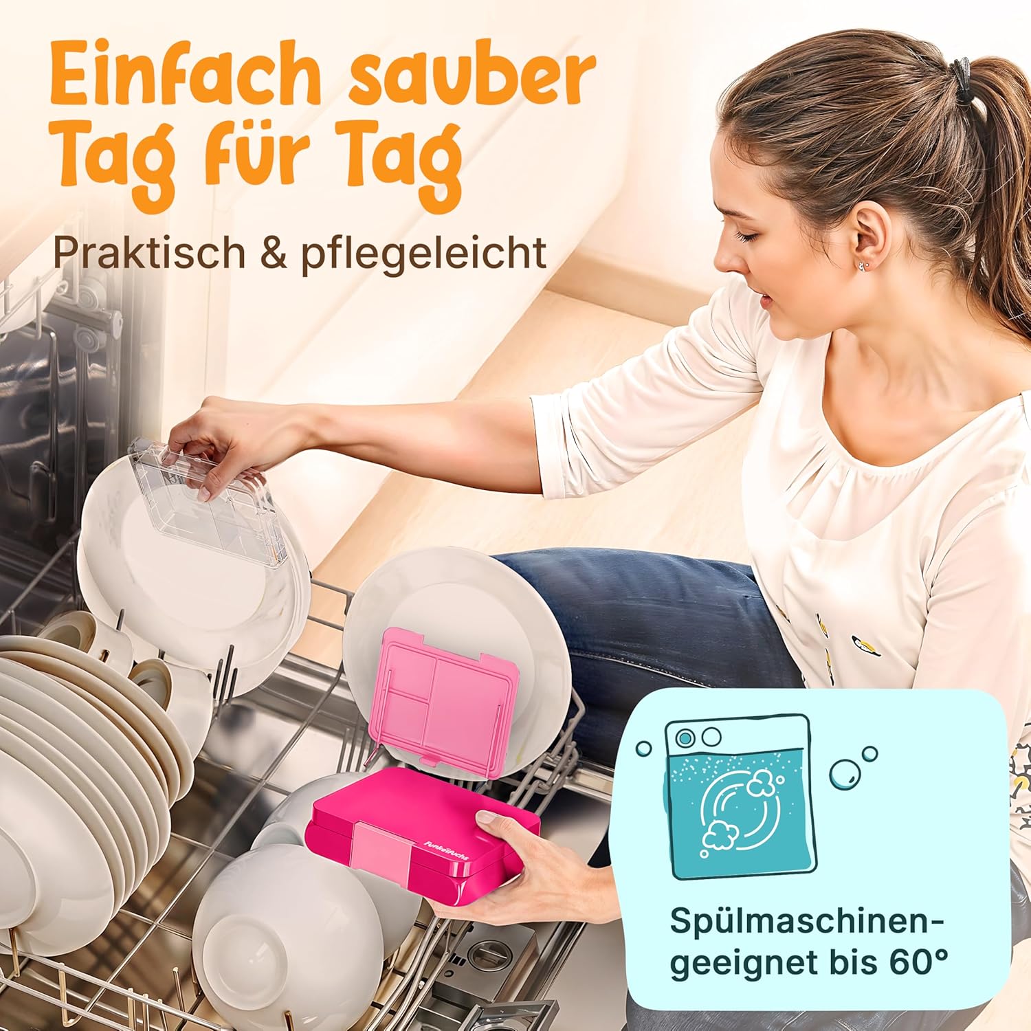 • ✅ Résistant au lave-vaisselle- Grâce à la combinaison de plastique ABS et Tritan de haute qualité, la boîte à lunch Funkelfuchs peut être facilement nettoyée au lave-vaisselle (50℃) sans se déformer.