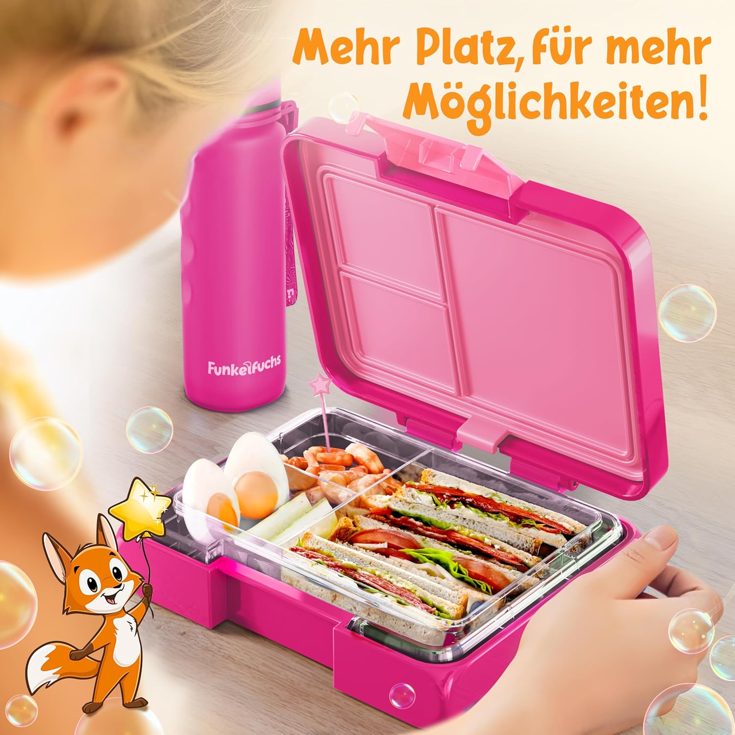 Funkelfuchs® - Boîte à lunch pour enfants avec compartiments - 500ml, rose - Boîte à lunch étoile, petite - Boîte à snack, boîte à snack, boîte à lunch, boîte à repas, boîte à bento pour enfants - pour l'école, la garderie et le jardin d'enfants