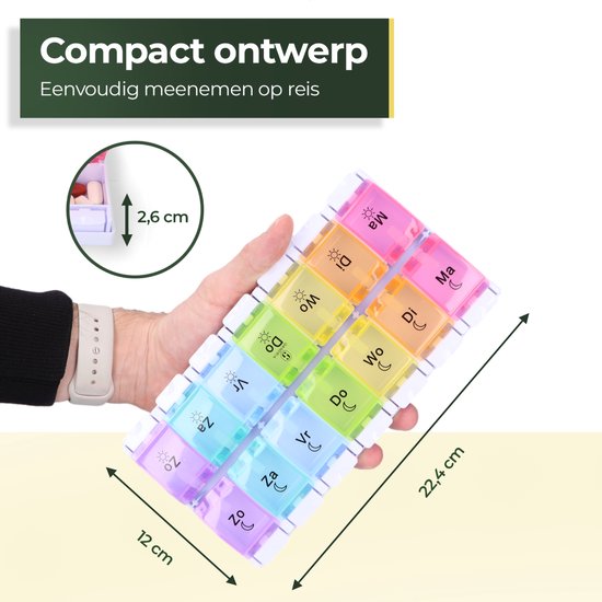 Grâce à sa taille compacte et à son design pratique, vous pouvez facilement emporter le pilulier avec vous où que vous alliez.