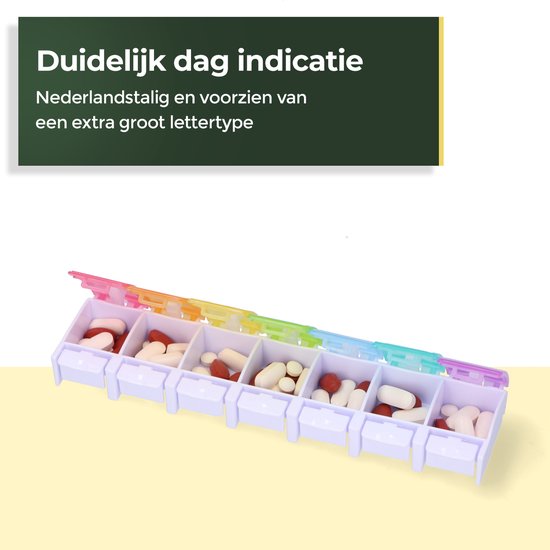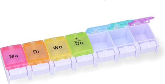 Vos médicaments ne seront plus jamais mélangés et vous ne vous tromperez plus jamais de médicament ! Grâce aux fermetures séparées des parties quotidiennes, vous êtes sûr de prendre le bon médicament sans confusion.