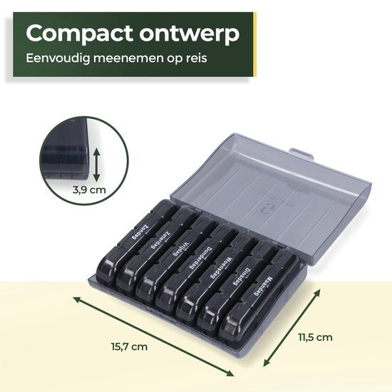 Le design compact et épuré de ce pilulier le rend facile à transporter et vous garantit un accès facile à vos médicaments, où que vous soyez.