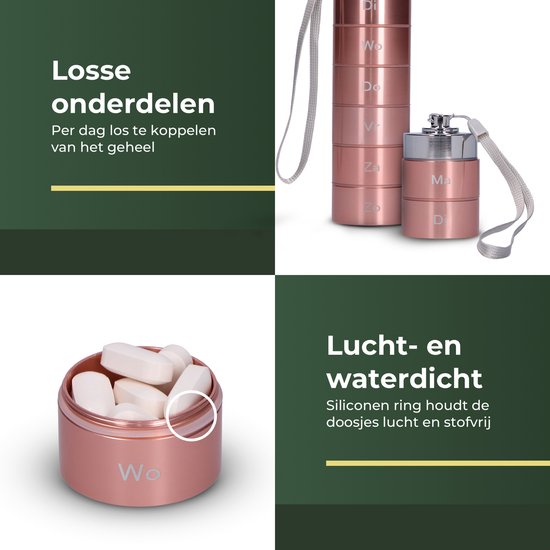 Boîte à pilules 7 jours Gandria - Boîte à pilules amovible - Boîte à pilules avec 7 compartiments - Boîte à médicaments avec fermeture solide - Étui - Étanche - Rose