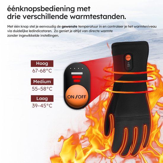 Gants chauffants - Light XL - 3 réglages - Gants électriques - Résistant à l'eau et au vent - Gants chauffants rechargeables - Noir - Saaf Comfort