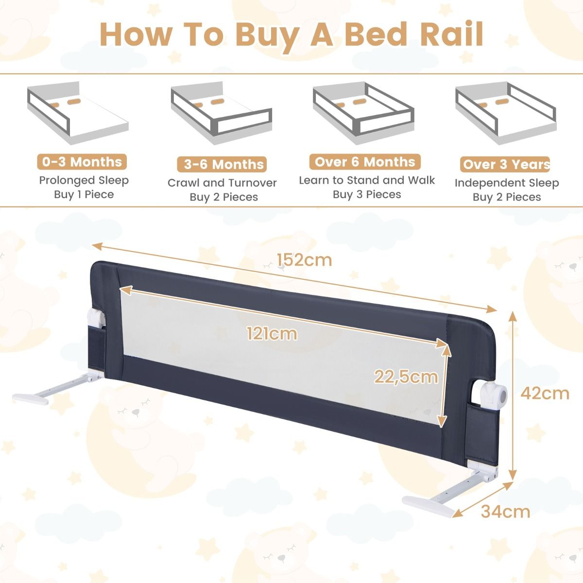 【Protégez la sécurité de votre bébé】Cette barrière de lit extra-longue mesure 150 cm de long pour plus de sécurité et s'adapte à différents lits. Lorsque votre enfant dort seul la nuit, cette barrière de lit offre la meilleure protection et crée un environnement de sommeil sûr.La barrière de lit est un élément essentiel de la sécurité de votre enfant.