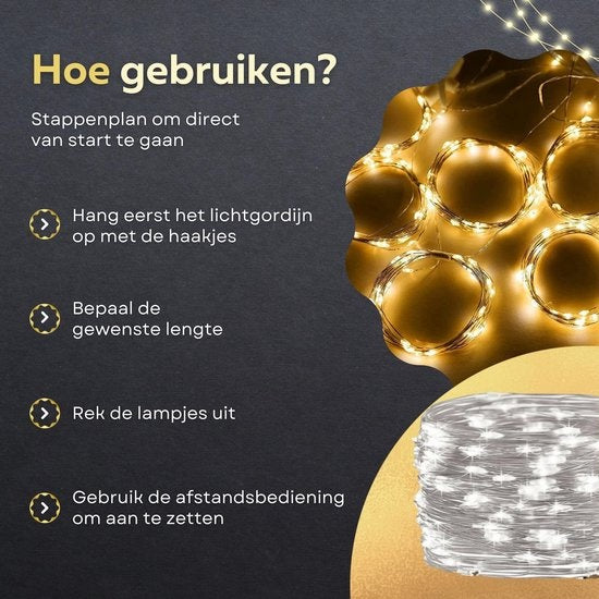 Ces lumières LED sont conformes à la classe de protection IP44 (IP44) et sont donc résistantes aux éclaboussures. Cela signifie qu'elles peuvent être utilisées à la fois à l'intérieur et à l'extérieur. Il est cependant important de garder le câble USB et le contrôleur à l'écart de l'eau car ils ne sont pas étanches à l'eau ! Agréable à suspendre sur la façade, la pergola ou le cabanon de jardin. Avec des dimensions de 3x3m, vous pouvez facilement décorer de grandes fenêtres ou façades.