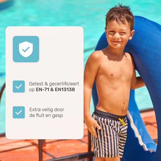 Certifié CE, ce gilet de sauvetage répond aux normes de sécurité requises.Le gilet de sauvetage Qwali permet à votre enfant de jouer dans l'eau en toute sécurité, tandis que le gilet reste parfaitement en place. Ce gilet de sauvetage se compose d'une seule pièce qui se fixe aux deux bras et à la poitrine à l'aide d'une boucle de fixation à l'arrière, de sorte que l'enfant ne peut pas détacher le gilet lui-même.