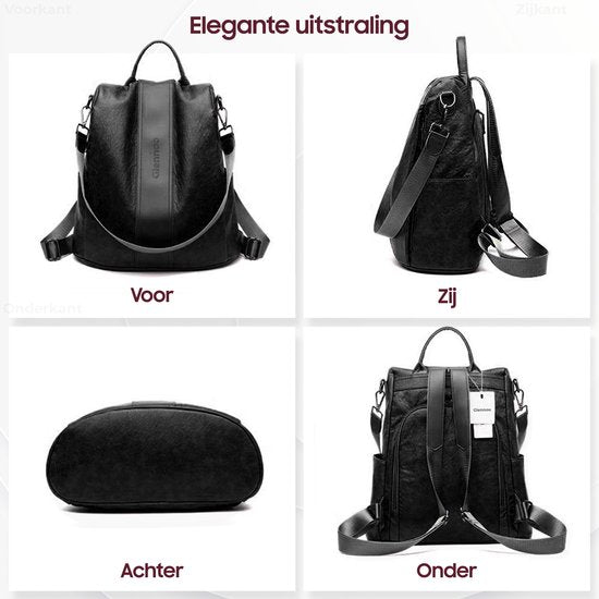 Glennoo Anti-theft Backpack Ladies - Sac à dos pour dames - Cuir PU - Noir