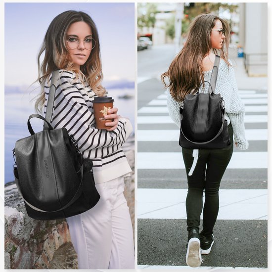 Glennoo Anti-theft Backpack Ladies - Sac à dos pour dames - Cuir PU - Noir