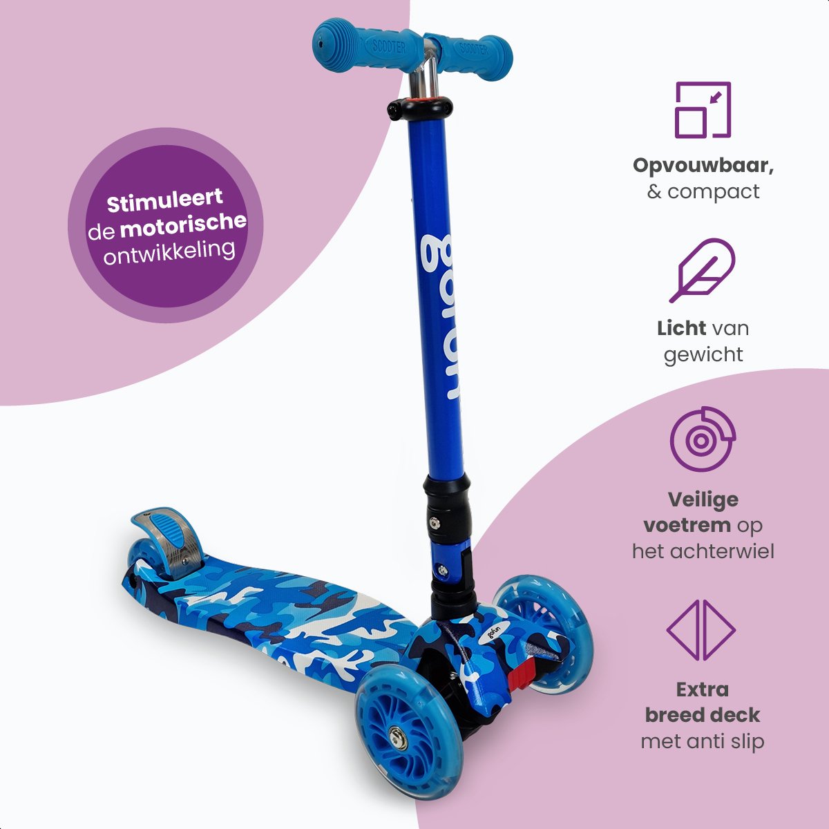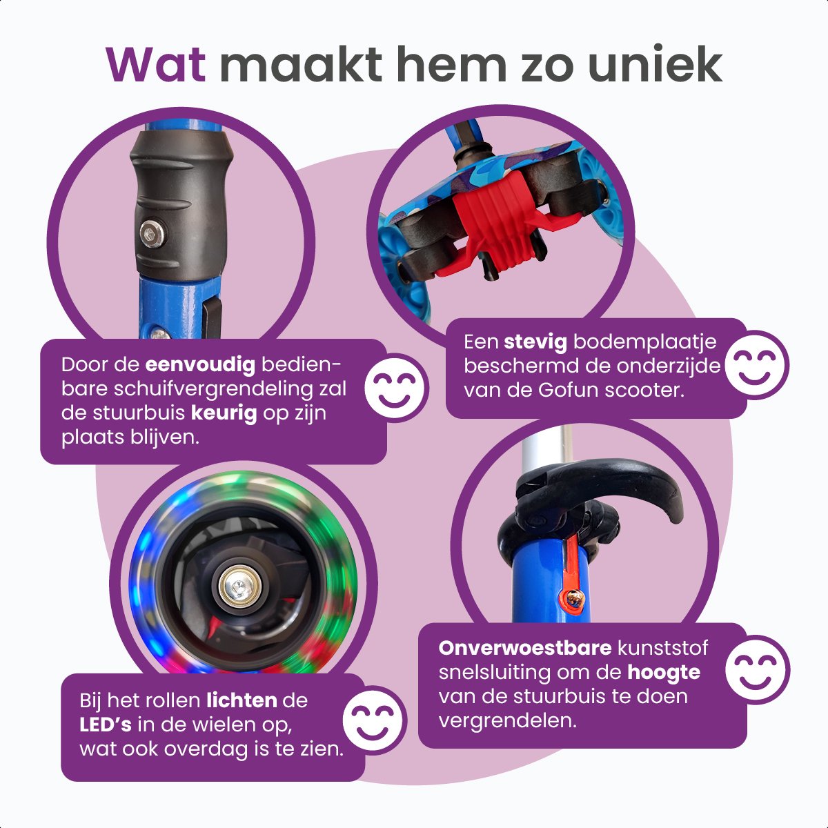 GoFun Kids scooter - Roues lumineuses - Pliable - Guidon réglable - 85 x 58 x 23 cm - Bleu