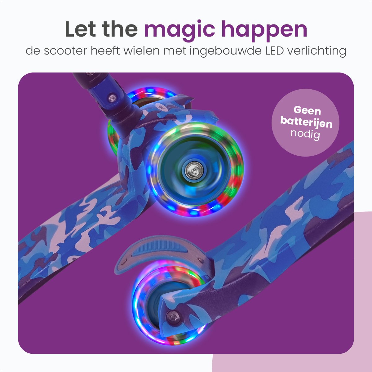 Roues avec LEDLes roues sont équipées de LED.La trottinette pour enfants comprend des roues accrocheuses avec des lumières LED intégrées qui fournissent un élément coloré et dynamique pendant la trottinette, sans avoir besoin de batteries.