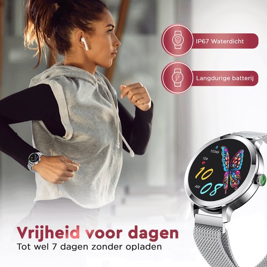 La smartwatch est conçue pour l'exercice et le sport au quotidien. La smArtwatch rend l'exercice à nouveau amusant grâce à diverses fonctions utiles. Vous voulez vous mettre en forme ? Fixez vos objectifs via la smartwatch et suivez-les facilement. Suivez votre fréquence cardiaque pendant vos séances d'entraînement, voyez combien de calories vous brûlez, comptez les pas que vous faites et mesurez la distance que vous parcourez. En outre, vous pouvez définir des notifications lorsque vous atteignez vos objectifs ou lorsque vous devez boire une gorgée d'eau.