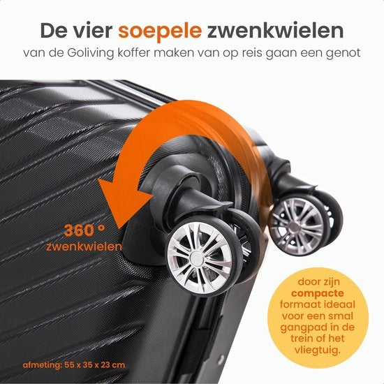 La valise à roulettes Goliving est faite pour vous ! Avec sa capacité spacieuse de 35 litres, cette valise offre beaucoup d'espace de rangement pour tous vos articles de voyage. La valise est également équipée d'une serrure TSA, qui garantit la sécurité du contenu, et d'un intérieur rembourré avec plusieurs poches pour des vacances bien organisées.