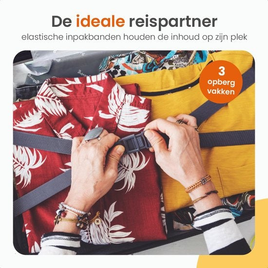 á Avec des compartiments pratiques Ð A l'intérieur de la valise, vous trouverez trois compartiments pratiques où vous pourrez ranger vos affaires. Les fermetures éclair robustes garantissent que tout reste en place.
