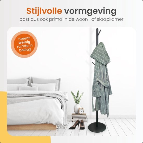 Ce produit est très pratique pour organiser vos vêtements et accessoires. Il est parfait pour créer un espace rangé et organisé. Vous pouvez facilement y suspendre vos manteaux, chapeaux et autres vêtements sans encombrer l'espace. Le porte-manteau est fabriqué en métal robuste et a un look moderne. Vous pouvez l'installer facilement et il est stable dans n'importe quelle pièce. Que vous l'utilisiez dans le couloir, le salon ou la chambre à coucher, ce porte-manteau sur pied est un ajout pratique et élégant à votre intérieur.