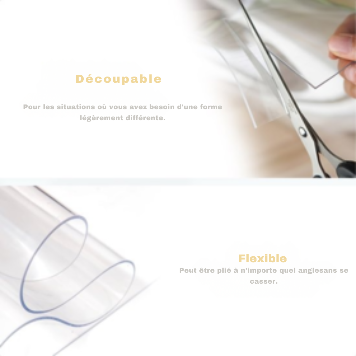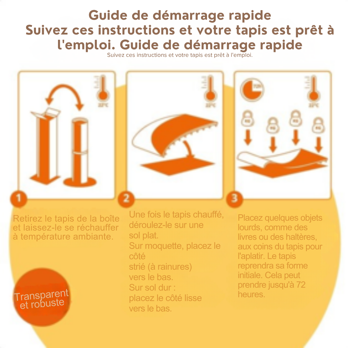 Transparence Totale : Fabriqué à partir de PVC transparent, ce tapis se fond discrètement dans n'importe quel intérieur sans compromettre l'esthétique de la pièce.