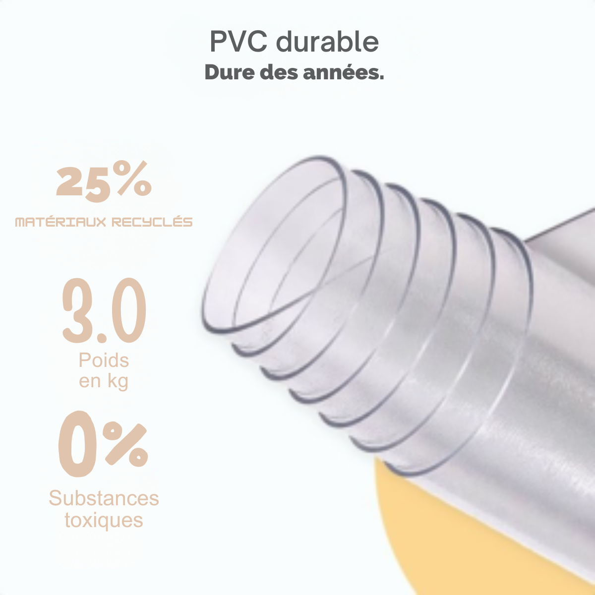 Matériaux Responsables : Conçu à partir de PVC recyclé, ce tapis de protection est à la fois écologique et durable, contribuant ainsi à la préservation de l'environnement.