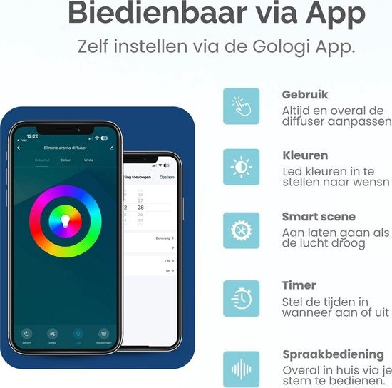 - Commandez le diffuseur facilement via l'application Gologi pratique sur votre smartphone.