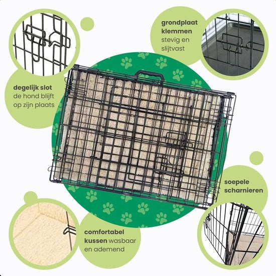 - Coussin inclus - La cage est livrée avec un coussin assorti qui s'adapte parfaitement à la cage. Ce coussin garantit que le sol de la caisse est agréable et doux et que la caisse elle-même reste propre. Ce coussin peut simplement être lavé dans la machine à laver.