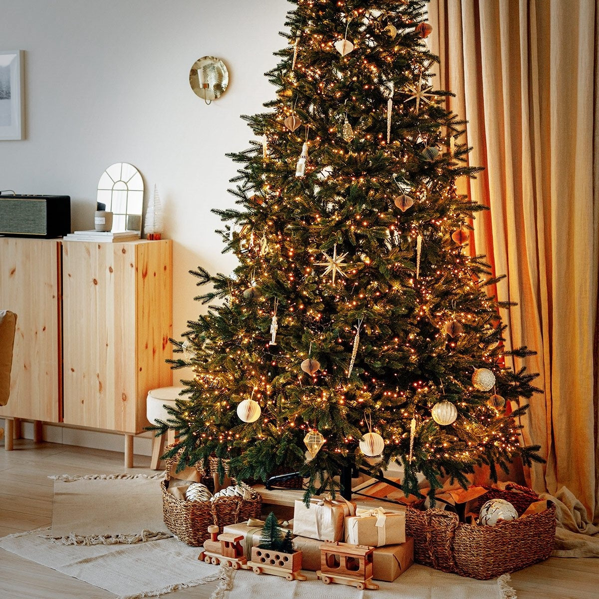 Conçue pour offrir un effet visuel spectaculaire, cette guirlande de 11 mètres est dotée de 1 512 LED à faible consommation d'énergie. Sa polyvalence est un atout majeur : grâce à son indice de protection IP44, vous pouvez l'utiliser aussi bien pour décorer un sapin majestueux dans votre salon que pour illuminer la façade de votre maison, un abri de jardin ou un balcon. Sa longueur est parfaitement adaptée pour décorer entièrement un arbre de Noël mesurant environ 210 cm.