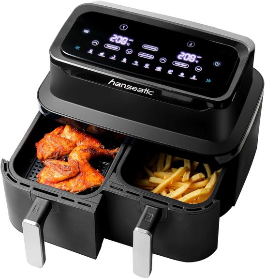 Grande capacité : Capacité XXL de 9 litres ou deux tiroirs séparés de 4,5 litres chacun - idéal pour des portions généreuses ou un poulet entier.