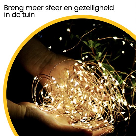 Par les chaudes soirées d'été, votre jardin est l'endroit idéal où se retrouver. Avec la guirlande lumineuse extérieure à 200 LED, vous créez non seulement une atmosphère chaleureuse, mais vous pouvez également en profiter jusque tard dans la soirée sans qu'il fasse trop sombre.