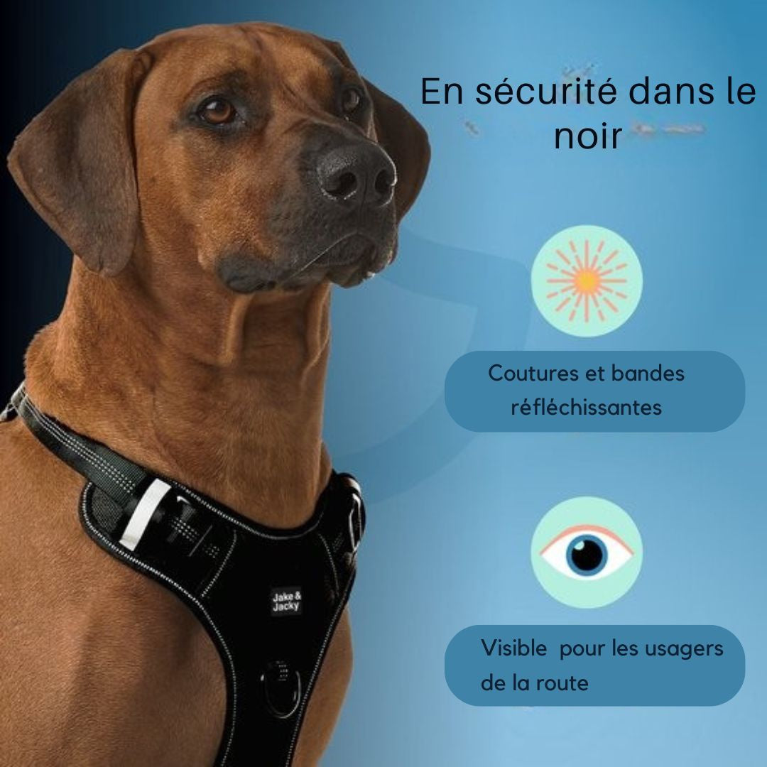 Harnais pour chien Jake et Jacky - Harnais anti-traction - Réfléchissant - Taille L - Noir