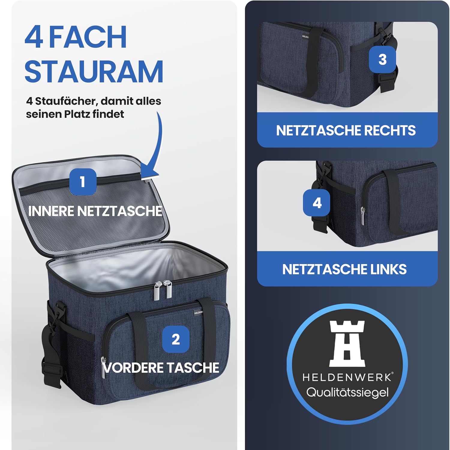 HELDENWERK Cooler Bag Small & Foldable - 10 Liter Thermal Lunch Bag - Insulated, Waterproof & Leakproof - Picnic Bag, Cooler Bag, Brunch and Lunch Bag - Navy Blue