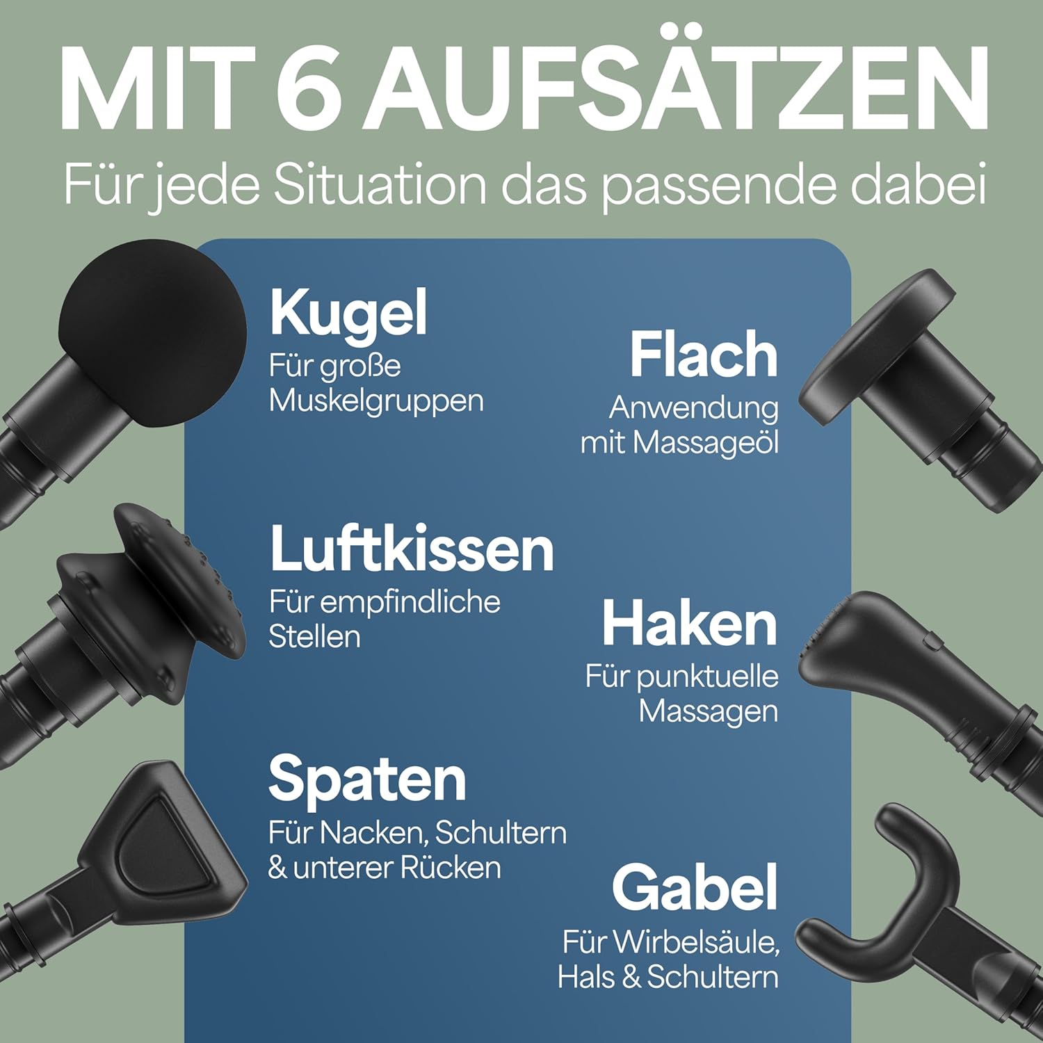 6 têtes de massage interchangeables pour tous les groupes musculaires