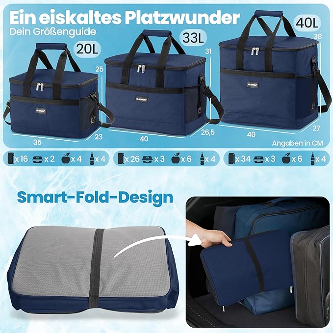 HELDENWERK grand sac isotherme pliable - glacière avec capacité de refroidissement jusqu'à 12 heures, étanche et imperméable - sac isotherme, sac à pique-nique, sac à lunch, sac isotherme avec 7 compartiments - fond renforcé