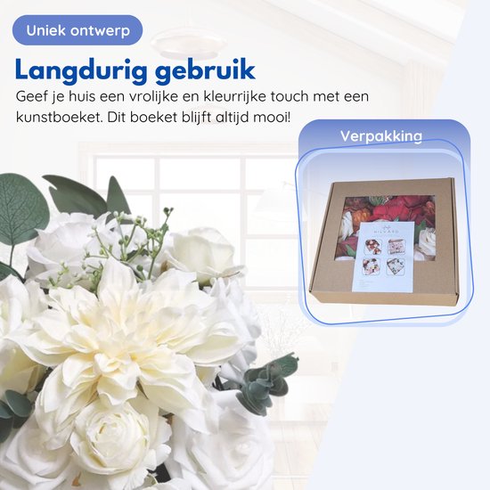 Grâce aux matériaux de haute qualité à partir desquels ce bouquet artificiel est fabriqué, vous pouvez en profiter pendant des années sans avoir à le remplacer. Vous disposerez ainsi toujours d'une superbe décoration florale dans votre maison !